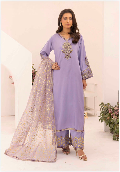 3 piece palachi suit with silk sharara and chiffon dupatta